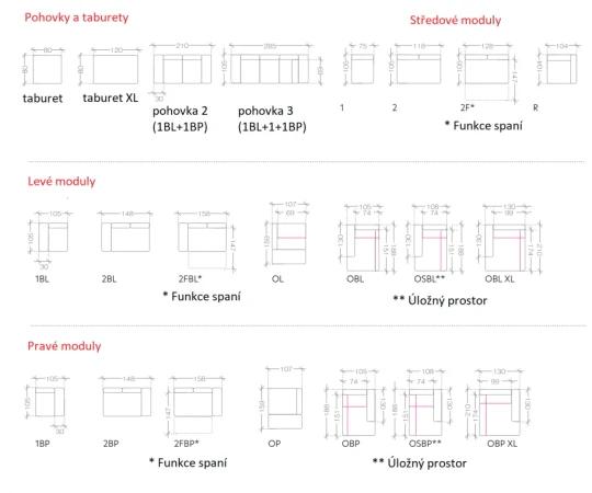 Kolekce se řadí mezi systémový nábytek, který bývá skvělým řešením v případech, kdy si plánujete vytvořit sezení na míru. Nabízí několik dílů mnoha tvarů a rozměrů, které lze objednat v různém uspořádání. Pokud se tedy rozhodnete pro vlastní sestavení sedačky, neváhejte nás kontaktovat.
